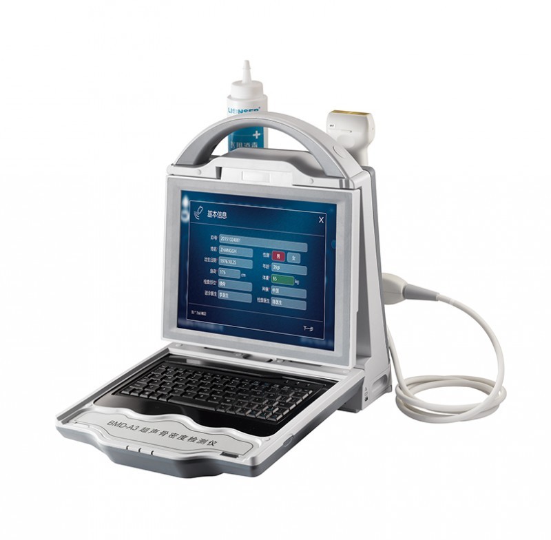 Ultrasound Bone Densitometer BMD-A3 Has Extensive Application. This Portable Model is the Best Choice for Hospital outgoing Examination, Hospital Wards, Mobile Inspection, Physical Examination Vehicle, Pharmaceutical factory, Pharmacy and Health Care Products Promotion.