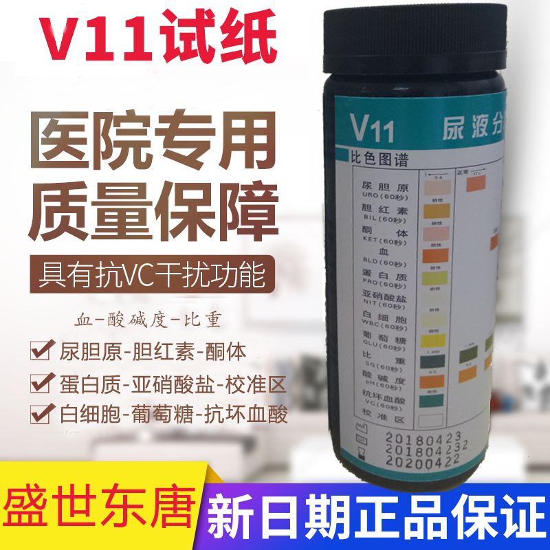 V11尿液分析試紙檢驗(yàn)項(xiàng)目:尿膽原、膽紅素、酮體、血、蛋白質(zhì)、亞硝酸鹽、白細(xì)胞、葡萄糖、比重、PH、抗壞血酸