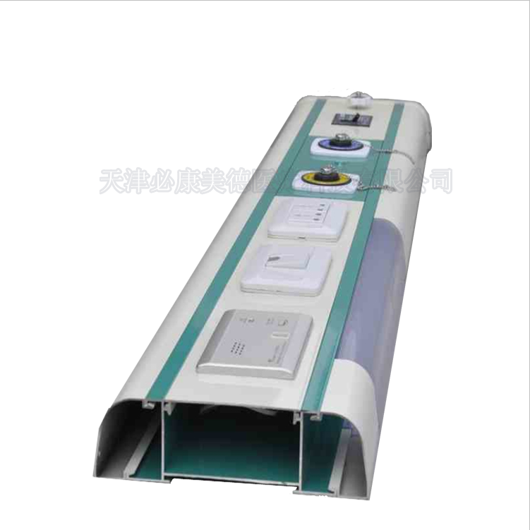 在病房內(nèi),氣體終端等設(shè)備安裝在設(shè)備帶上,每個(gè)病房或相鄰的兩個(gè)病房共用一個(gè)氣體截止閥,用于啟閉管道。中國醫(yī)療機(jī)構(gòu)規(guī)定,所有的中心供氧的銅管不允許埋設(shè)在墻壁內(nèi),而只能安裝在管道或吊頂內(nèi)。因此,一般的解決方案就是病房內(nèi)都要安裝醫(yī)用設(shè)備帶。在中國,設(shè)備帶的寬度和墻面的寬度相同,而在其它國家,設(shè)備帶的寬度通常為1.2m或1.5m。