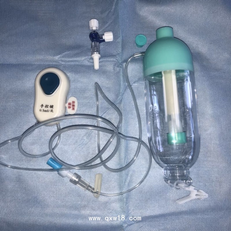 由加藥裝置(帶防回流閥)、液囊(彈力貯液裝置)、藥液過濾器、液囊保護外殼、限流裝置、自控給液裝置、開關(guān)、管路和接頭組成。產(chǎn)品經(jīng)環(huán)氧乙烷滅菌后無菌,為一次性使用,本產(chǎn)品不含藥。