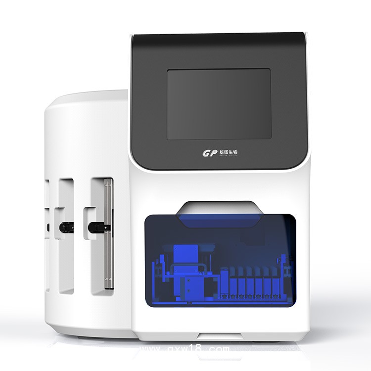 Getein1600全自動熒光免疫定量分析儀配套基蛋生物科技股份有限公司生產(chǎn)的免疫熒光法專用試劑盒,體外定量檢測人血清、血漿、全血、尿液中心肌肌鈣蛋白I、N-端腦利鈉肽前體、全程C反應蛋白(hs-CRP+常規(guī)CRP)、肌紅蛋白、肌酸激酶同工酶、D-二聚體、降鈣素原、 微量白蛋白、胱抑素C、β2-微球蛋白、中性粒細胞明膠酶相關脂質運載蛋白、心型脂肪酸結合蛋白、糖化血紅蛋白、絨毛膜促性腺激素及β亞單位的含量,檢測結果用于臨床輔助診斷。更便捷:全自動,自動完成質控、吸樣、稀釋、混勻、測量、計算、打印報告全過程,程序自動升級,支持LIS、HIS系統(tǒng)互聯(lián)。