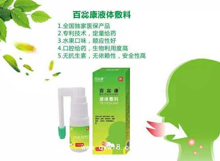 適用于患有急,慢性咽喉炎,咳嗽,扁桃體炎,咽喉腫痛,口腔炎,牙齦腫痛人群。主要成分為生物肽,百蕊草。生物肽可提升局部免疫力,百蕊草為經(jīng)典百蕊顆粒成分,臨床效果顯著。