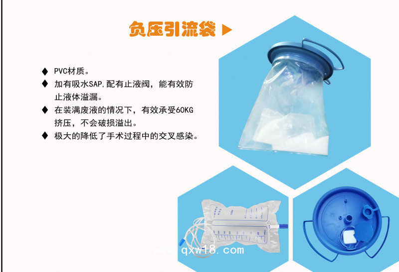 使用說明:將引流袋上的引流導管與插入患者體內(nèi)的引流導管相連接,懸掛于患者體側(cè)