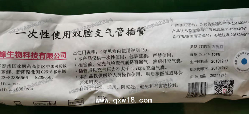 立峰生物一次性使用雙腔支氣管插管 右側(cè)32Fr產(chǎn)品說明: