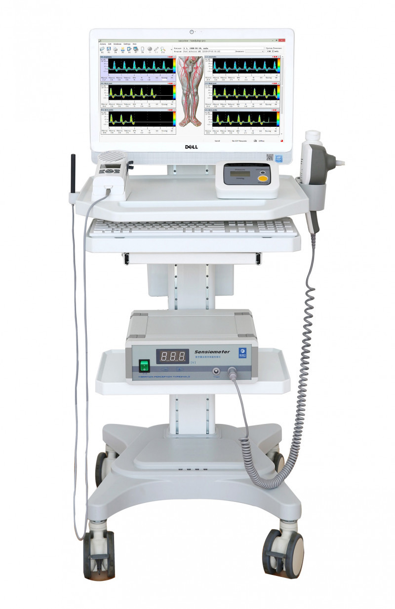 ?糖尿病足診查一體機適開展糖尿病足檢查的專用工具。該設(shè)備主機采用德國Handydop-Pro雙向彩色頻譜多普勒診斷系統(tǒng),用于檢查糖尿病下肢各動脈情況及踝肱指數(shù)(ABI)、趾肱指數(shù)(TBI),量化評價糖尿病患者下肢血管病變程度。