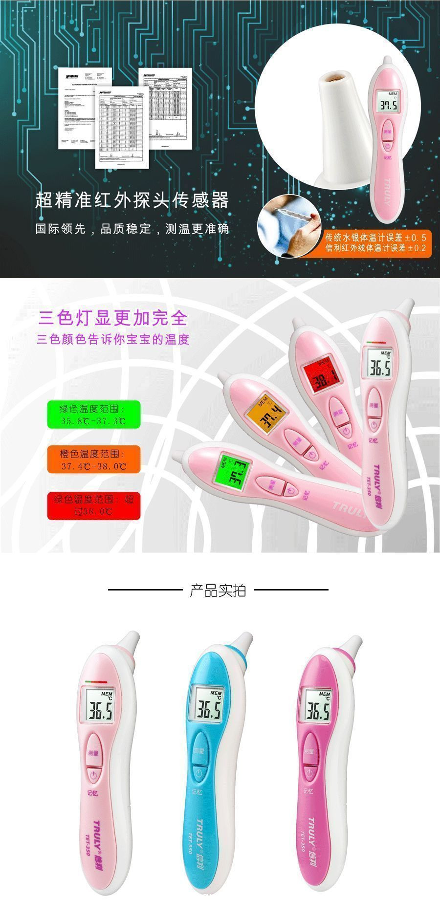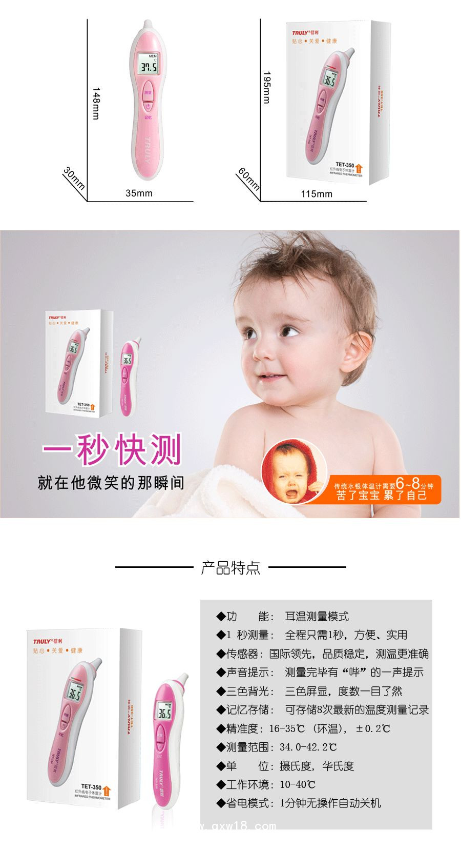 信利紅外線電子體溫計TET-350產(chǎn)品說明: