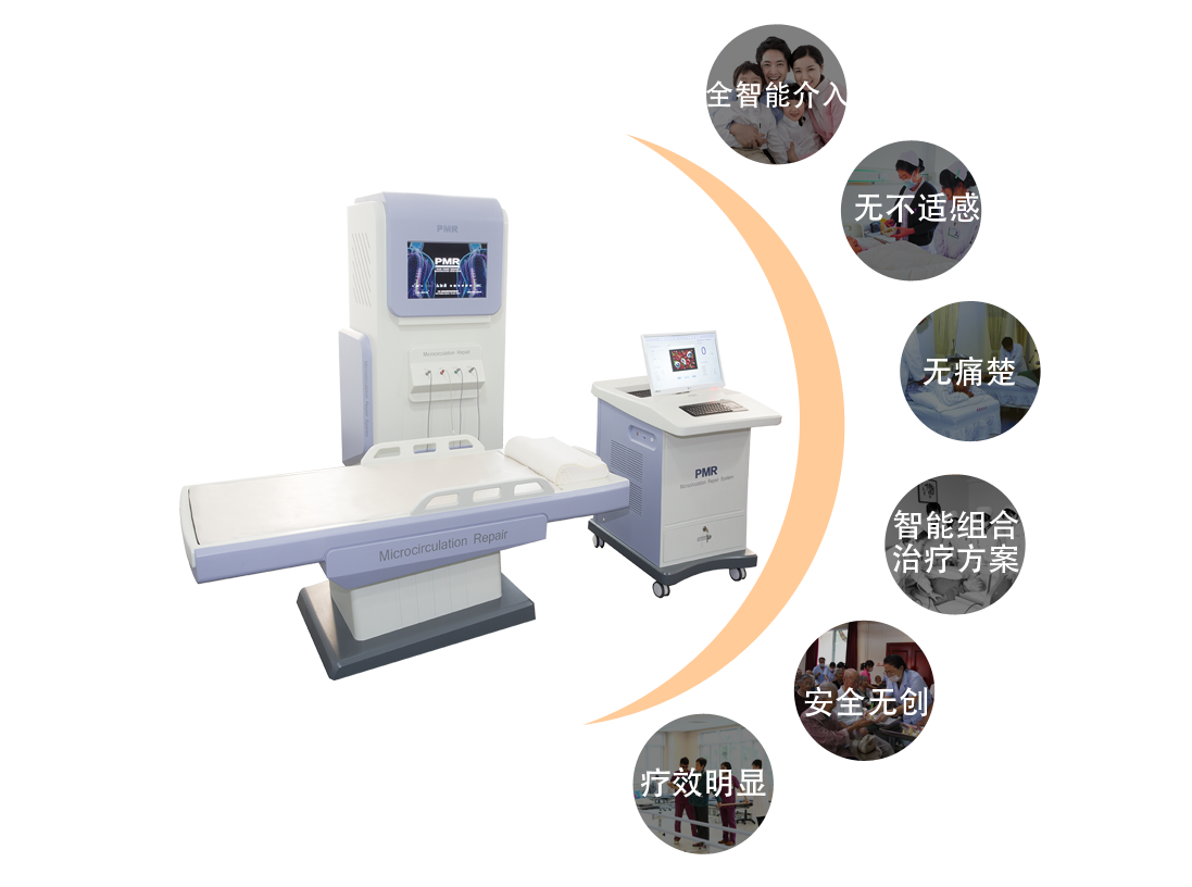 PMR微循環(huán)修復(fù)系統(tǒng),應(yīng)用仿生脈沖磁共振原理,結(jié)合極低頻電磁導(dǎo)入技術(shù)及空間電磁場控制技術(shù),通過多組脈沖發(fā)射源列陣重組,發(fā)射極低頻PEMF,改變原子核自旋,使細(xì)胞膜在原有電位基礎(chǔ)上,產(chǎn)生新的跨膜電位,改變膜表面的荷分布,糾正血流變指標(biāo),改善血管舒張功能,促進(jìn)血液循環(huán),進(jìn)而改善骨骼、肌肉、血液及其他病理狀態(tài),使病變組織微循環(huán)得到良好修復(fù)。