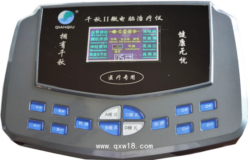 ? 千秋Ⅱ微電腦治療儀,是我公司自主研發(fā)設(shè)計的中頻治療儀,結(jié)合了我國傳統(tǒng)的中醫(yī)、針灸、中藥理論和現(xiàn)代電腦技術(shù)。采用了智能化設(shè)計中頻0.5-12000Hz及干擾電技術(shù)的電脈沖模擬針灸,模擬傳統(tǒng)推拿療法,有推、拿、按、捶、振、揉等多種手法疏通經(jīng)絡(luò)、活血化瘀、扶正祛邪,是標(biāo)本兼治的優(yōu)選療法。
