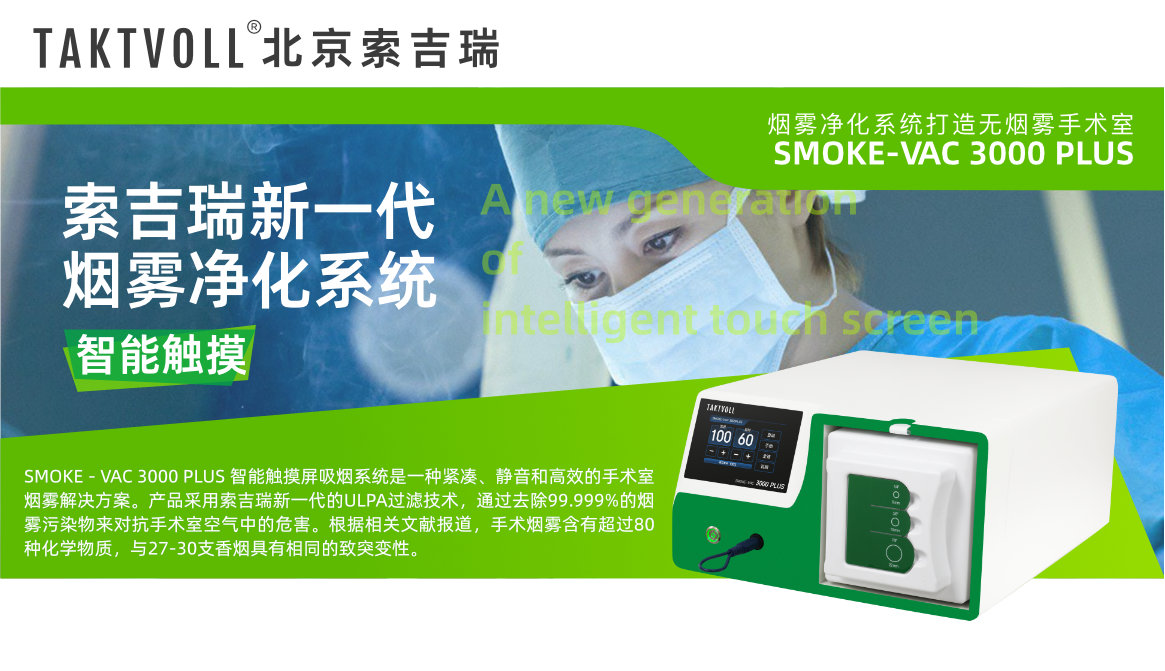 SMOKE - VAC 3000 PLUS 智能觸摸屏吸煙系統(tǒng)是一種緊湊、靜音和高效的手術(shù)室煙霧解決方案。產(chǎn)品采用索吉瑞新一代的ULPA過濾技術(shù),通過去除99.999%的煙霧污染物來對抗手術(shù)室空氣中的危害。根據(jù)相關(guān)文獻報道,手術(shù)煙霧含有超過80種化學(xué)物質(zhì),與27-30支香煙具有相同的致突變性。