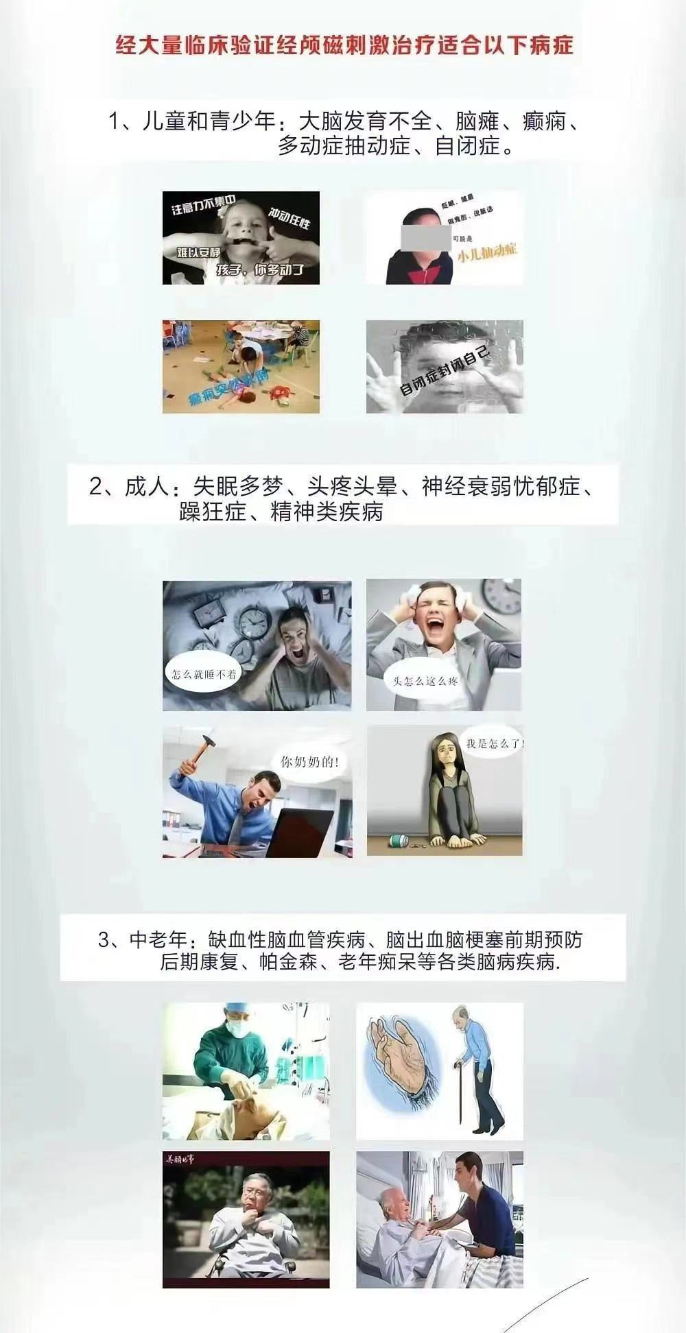 如創(chuàng)傷引起的應(yīng)激障礙、偏癱等,可通過經(jīng)顱磁治療儀,減少中樞神經(jīng)傳導(dǎo)時(shí)間,緩解偏癱患者不能自主運(yùn)動(dòng)等癥狀,還可刺激神經(jīng),預(yù)防肌肉萎縮等。還可用于腦癱患兒在常規(guī)康復(fù)訓(xùn)練基礎(chǔ)上的輔助治療,通過經(jīng)顱磁治療可有效改善患兒智力,提高患兒運(yùn)動(dòng)功能。