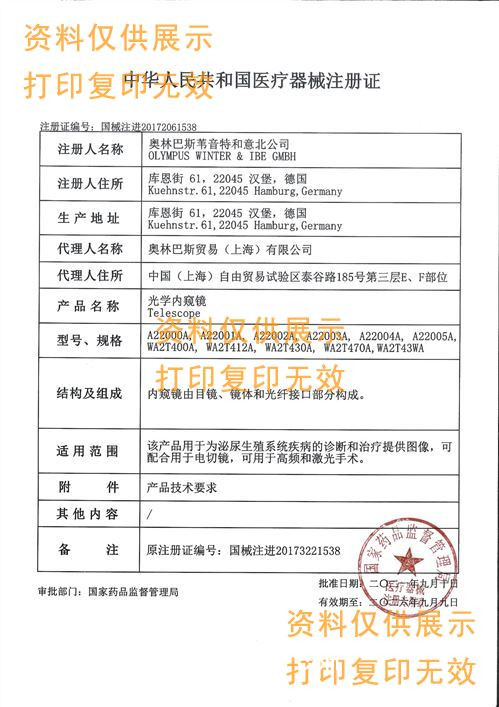 奧林巴斯光學內(nèi)窺鏡、等離子電切鏡WA2T412A產(chǎn)品說明: