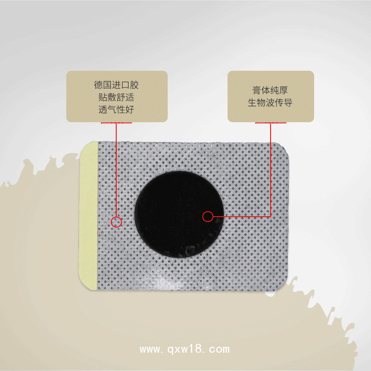 【結(jié)構(gòu)組成】由水刺無紡布、醫(yī)用膠、遠(yuǎn)紅外陶瓷粉、離型紙組成。