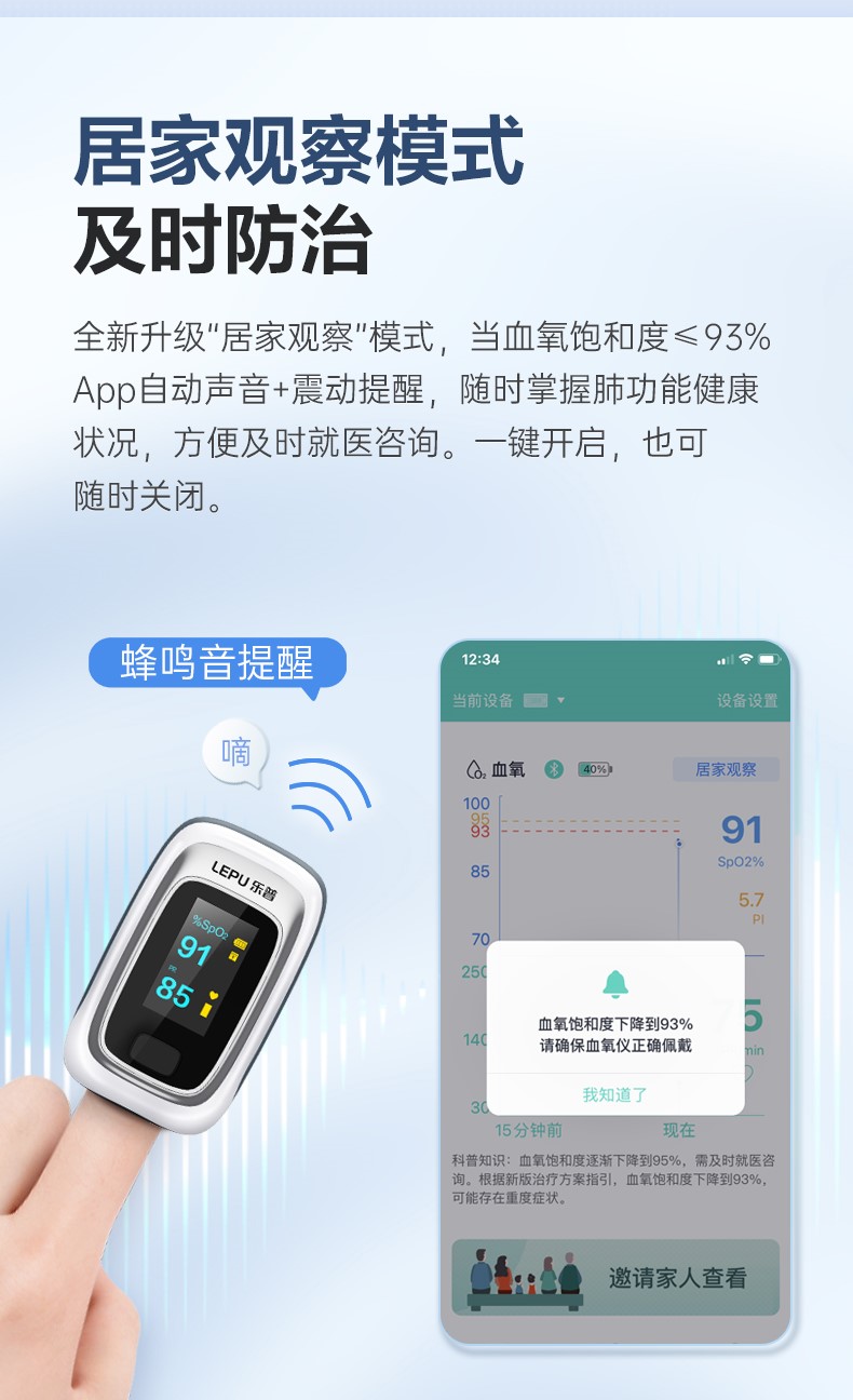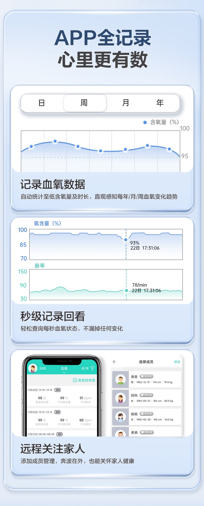 無線連接APP,血氧趨勢記錄,全面數(shù)據(jù)管理,支持添加成員管理