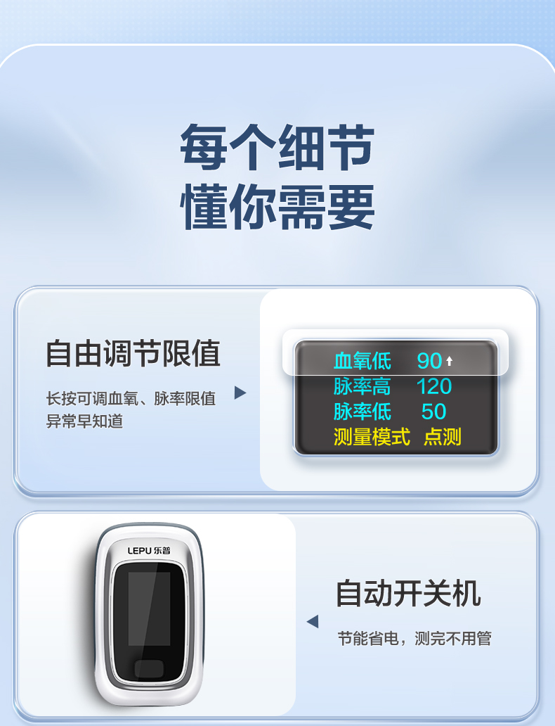 準(zhǔn)確測量血氧、脈率、PI值,獨(dú)有抗運(yùn)動算法