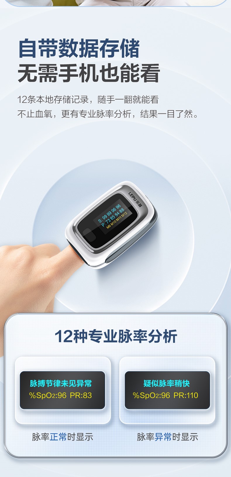 12組記錄本地存儲,專業(yè)脈率分析,結(jié)果實(shí)時(shí)查看