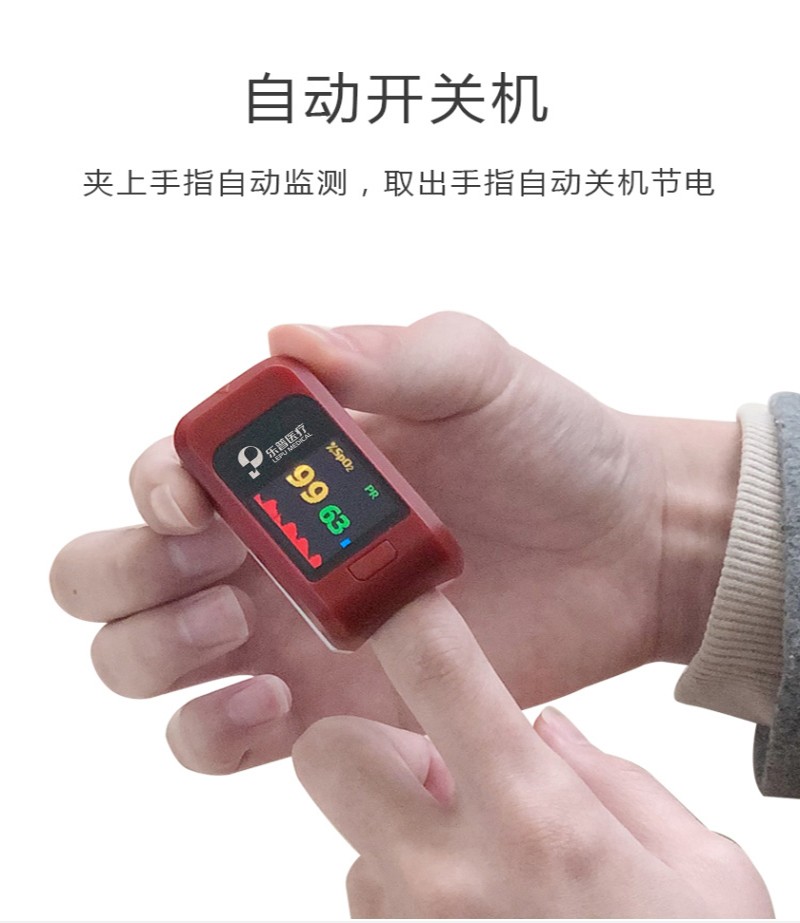在手指插入橡膠指套內(nèi)后,血氧儀會(huì)自動(dòng)開始測量;?