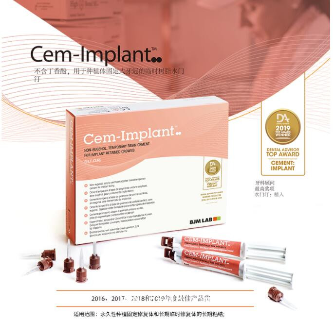 Cem-Implant?蟬聯(lián)2016-2019年度最佳產(chǎn)品獎,是牙科顧問首選種植水門汀。