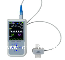 二氧化碳監(jiān)測儀由主機和附件組成,主機:供電單元、顯示單元和測量單元組成。附件:血氧探頭(KMI605B、KMI605D無此部分)、CO2采樣管。