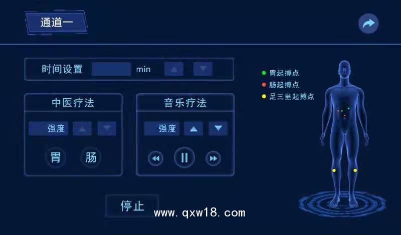 2.設(shè)備具有六通道十路輸出端口,可同時(shí)治療兩個(gè)患者,可同時(shí)用于腸胃起搏點(diǎn),胃腸同治!且配備的雙側(cè)耳機(jī),可選擇進(jìn)行音樂治療!