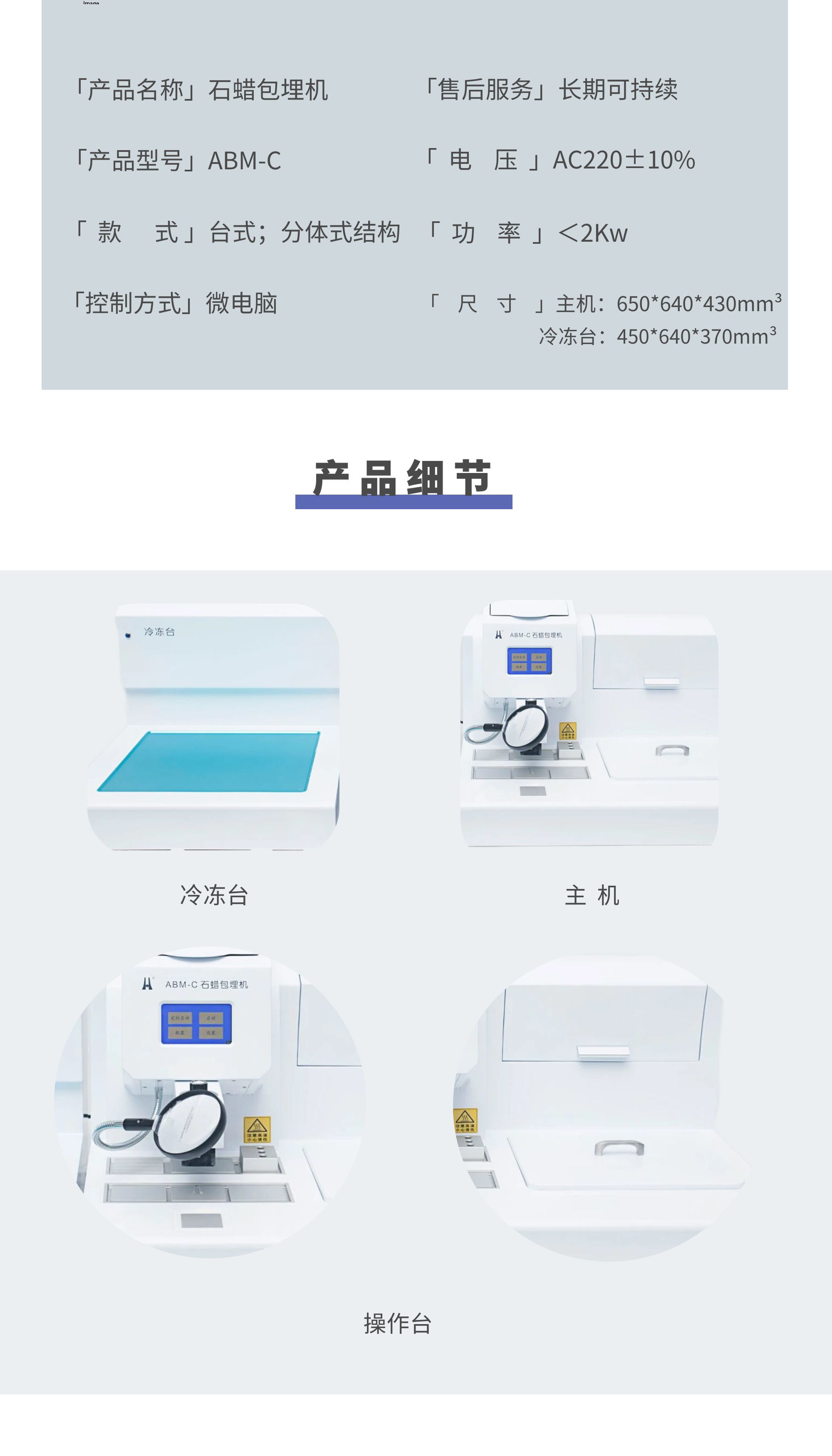4.分體式結(jié)構(gòu):包埋部分和冷凍臺分開,包埋部分帶小冷臺,冷凍臺為整體鋁合金材質(zhì)。