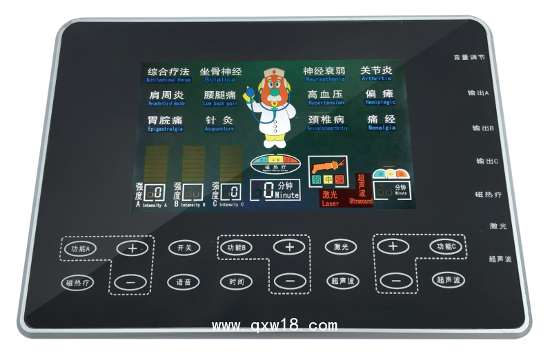 相關(guān)介紹:穴位是人體生物電磁場的活動頻繁點或敏感點,而經(jīng)絡(luò)是生物電磁傳導(dǎo)的通道,根據(jù)中醫(yī)學(xué)和經(jīng)絡(luò)學(xué)及其針灸學(xué)理論,將數(shù)碼多功能治療儀的兩個電極貼敷在相關(guān)的經(jīng)絡(luò)或穴位上(不同疾病對應(yīng)的治療穴位及穴位查找方法請參閱相關(guān)的資料)。每次使用時選取兩個穴位為一組,每次治療時間為10—30分鐘,每日2次,7天為一個療程。