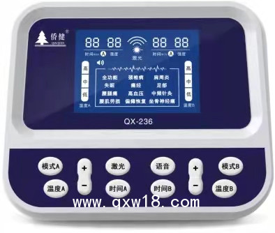 超大彩屏:高檔超大LCD彩屏。實(shí)現(xiàn)了文字、數(shù)字、聲、光綜合顯示,能清晰地顯示時(shí)間、溫度和輸出的強(qiáng)度數(shù)據(jù),自動(dòng)控制熱療溫度與中頻頻率脈沖的漲落