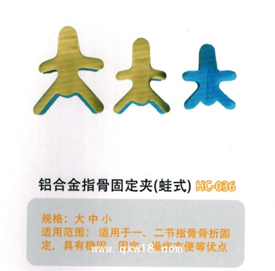 醫(yī)用外固定夾板鋁合金指骨固定夾(蛙式)HC-036產(chǎn)品說明: