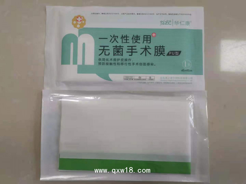 1、 按臨床需要,選擇適用規(guī)格,待皮膚上消毒液干燥后,撕開包裝袋取出手術(shù)薄膜,利用兩端彩色邊緣把手術(shù)膜拉平,再將貼于手術(shù)膜的白色保護(hù)層撕下,將手術(shù)薄膜貼敷于手術(shù)區(qū)皮膚上。