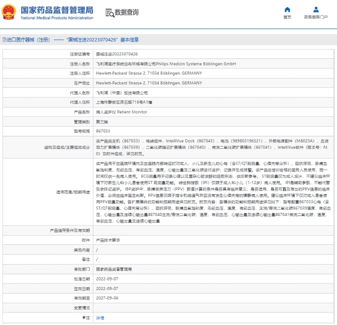 該產(chǎn)品用于在醫(yī)院環(huán)境內(nèi)及在醫(yī)院內(nèi)部轉(zhuǎn)運時對成人、小兒及新生兒的心電(含ST/QT段測量、心律失常分析)、阻抗呼吸、脈搏血氧飽和度、無創(chuàng)血壓、有創(chuàng)血壓、溫度、心輸出量及二氧化碳進行監(jiān)護、記錄并生成報警。該產(chǎn)品由培訓(xùn)合格的醫(yī)務(wù)人員使用,同一時間僅供一名病人使用。ECG測量用于記錄心律以及復(fù)雜心臟波群的細致形態(tài),供診斷參考。ST段測是僅為成人設(shè)計,不建議臨床環(huán)境下對新生兒和小兒患者使用ST 段測量功能。綜合肺指數(shù)(IP) 僅限于成人和小兒(1-12歲)病人使用,IP是助參數(shù),不能代替生命體征監(jiān)護。1BP監(jiān)護中,脈排變異壓力(PPV) 數(shù)值計算的條件是否具有臨床意義、是否適用、是否可靠及導(dǎo)出的PPV信息的臨床價值,必須由臨床醫(yī)生判斷。PPV信息僅限于指令機械通氣并且沒有發(fā)生心律失常的鎮(zhèn)靜病人使用。建議臨床環(huán)境下僅對成人患者使用PPV測量功能.各擴展模塊的功能和預(yù)期用途洋見頁。附頁內(nèi)容: 各模塊的功能和預(yù)期用途洋見如下:型號配蛋867033心電(含ST/OT段測是、心律失常分析)、阻抗呼吸、脈搏血氧飽和度,無創(chuàng)血壓,溫度,有創(chuàng)血壓,主流/旁流二氧化碳867039溫度,有創(chuàng)血壓,心輸出是及連續(xù)心輸出量867040主流/旁流二氧化碳,溫度,有創(chuàng)血壓,心輸出是及連續(xù)心航出量867041微流二氧化碳,溫度,有創(chuàng)血壓,心輸出是及連續(xù)心輸出量