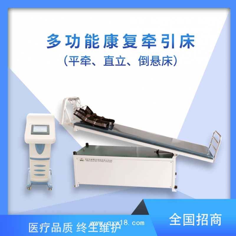 多功能康復(fù)牽引床是一種既能平行牽引,又能斜位牽引,且能懸梁倒掛;既能電動(dòng),又能微電腦控制進(jìn)行治療的康復(fù)設(shè)備,廣泛適用于康復(fù)科、理療科、骨傷科等。