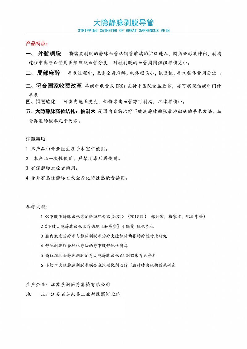 大隱靜脈剝脫導(dǎo)管產(chǎn)品說明: