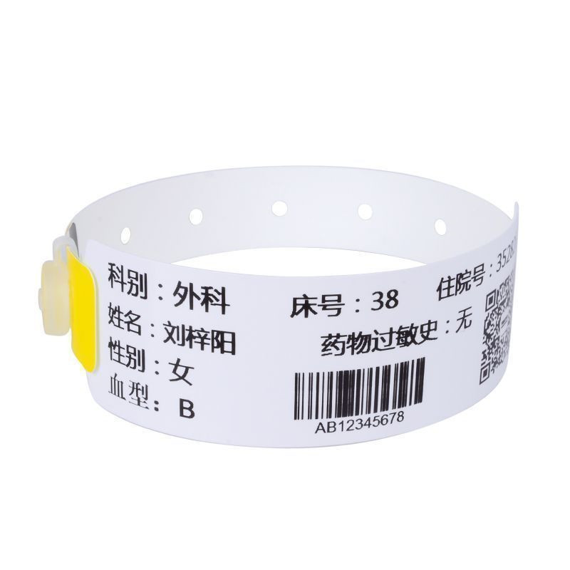 目前許多智慧醫(yī)院都建立了醫(yī)院HIS系統(tǒng),所有終端都實(shí)現(xiàn)聯(lián)網(wǎng),醫(yī)用條碼熱敏打印腕帶上可打印條碼標(biāo)識(shí),患者只需憑借腕帶上的信息條,即可快捷查詢檢驗(yàn)結(jié)果、住院費(fèi)消費(fèi)情況等。
