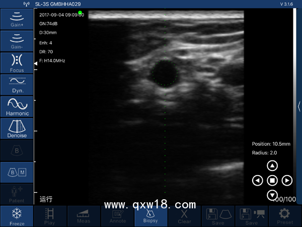 -穿刺輔助功能:平面內(nèi)穿刺引導(dǎo)線功能,平面外穿刺引導(dǎo)與血管自動測量功能,針尖顯影增強功能