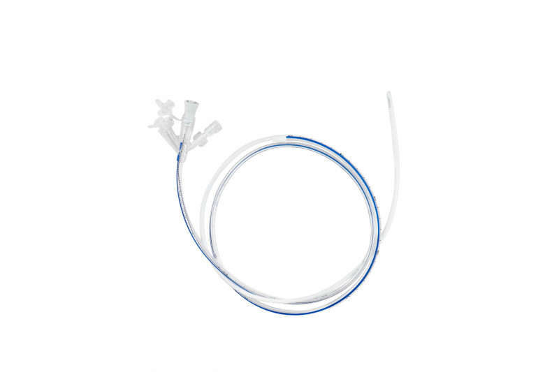 子彈頭胃腸營養(yǎng)管——胃腸一體管,喂養(yǎng)腔末端可至腸,用于十二指腸或空腸營養(yǎng);吸引腔末端可至胃,用于胃部減壓;輔腔末端可至胃,用于胃部減壓時的壓力控制。適用于腸道功能基本正常而胃腸功能受損或吸入風險增高的病人,用于重癥監(jiān)護病人進行胃液引流。