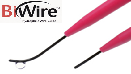 BiWire導(dǎo)絲可為建立輸尿管操作通道提供兩種選擇,其兩端均為軟頭(一端直頭、一端彎頭),任何一端均可作為導(dǎo)引端通過扭曲的輸尿管,BiWire這種二合一的特性可降低庫存需求。鎳鈦合金芯在極度彎曲時(shí)也不會(huì)發(fā)生扭折,1比1扭矩控制使導(dǎo)絲可通過挑戰(zhàn)性部位。AQ涂層為親水性聚合物超薄涂層,激活后能吸附并保存水分和其它液體,推進(jìn)時(shí)表面摩擦阻力低,易于推進(jìn)。