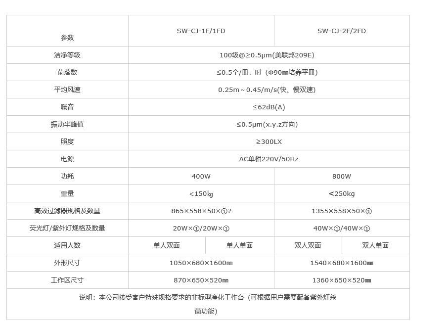 SW-CJ-1F/SW-CJ-1FD凈化工作臺產(chǎn)品說明: