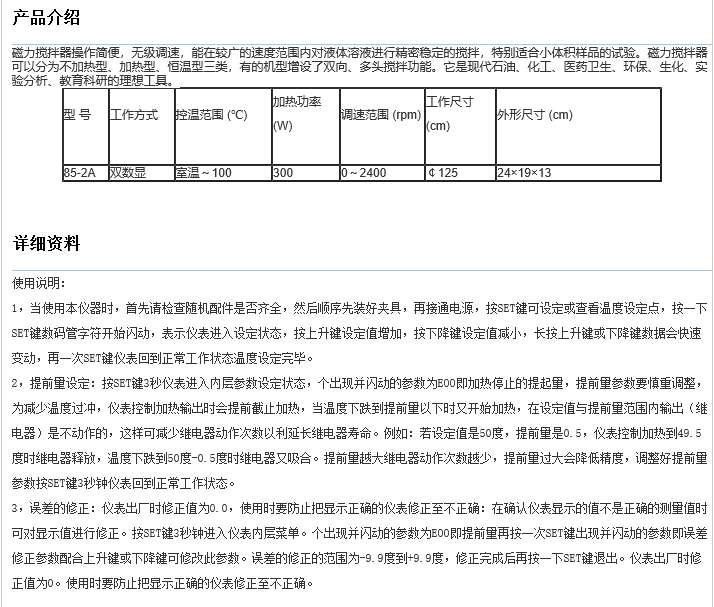 (85-2 HJ-3)恒溫磁力攪拌器產(chǎn)品說明: