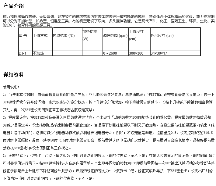 DJ-1大功率磁力攪拌器產(chǎn)品說(shuō)明: