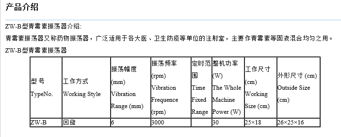 ZW-B藥物振蕩器產(chǎn)品說明: