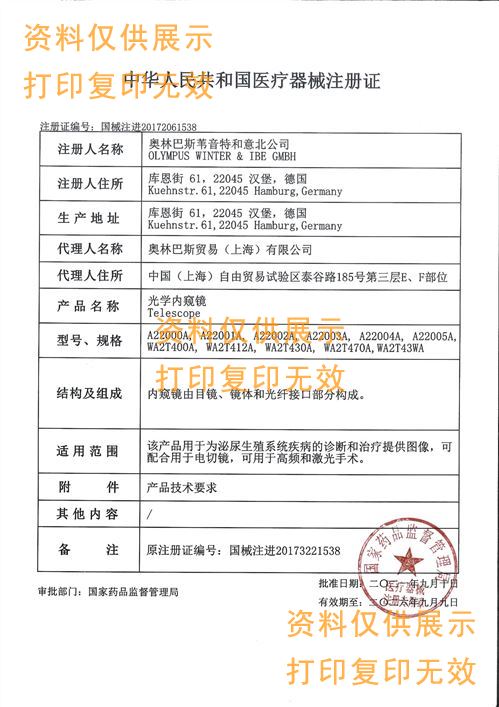 注冊證名稱:光學(xué)內(nèi)窺鏡