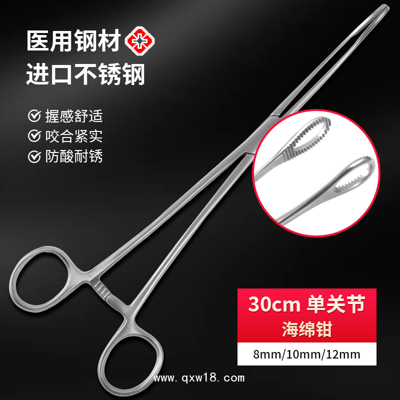 胸腔小切口海綿鉗 不銹鋼單關(guān)節(jié)鉗式有齒海綿鉗卵園鉗持物鉗圈鉗產(chǎn)品說明: