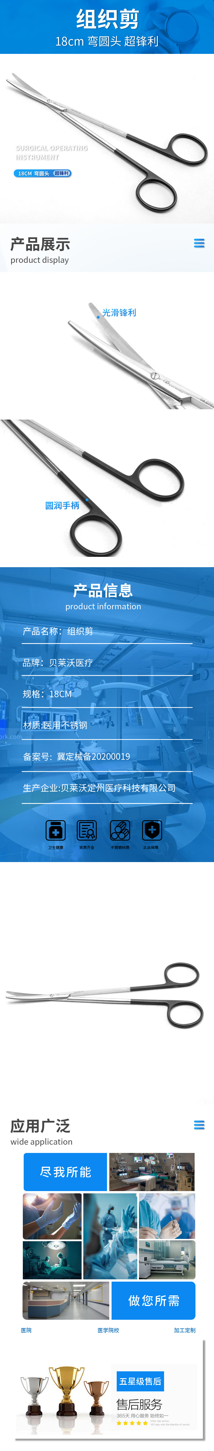 基礎外科組織剪 醫(yī)用超鋒利組織剪德國不銹鋼彎圓頭超鋒利組織剪產(chǎn)品說明: