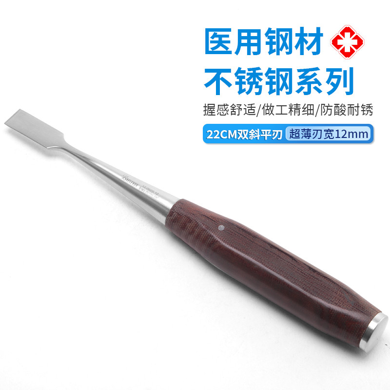 骨科骨鑿 醫(yī)用骨鑿 德國(guó)不銹鋼雙斜平刃骨鑿 超薄刃膠木柄骨鑿產(chǎn)品說明: