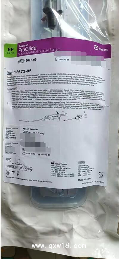 產(chǎn)品型號(hào):12673,1267305醫(yī)療器械注冊(cè)證編號(hào):國(guó)械注進(jìn)20163655072適用范圍:Perclose ProGlide 血管縫合器系統(tǒng)適用于5F至21F鞘管進(jìn)行介入導(dǎo)管檢查或治療的病人,在術(shù)后經(jīng)皮遞送縫線以縫合股總動(dòng)脈穿刺部位。鞘管尺寸大于8F時(shí),至少需要2件縫合器械,并同時(shí)采用預(yù)先埋置縫合技術(shù)。結(jié)構(gòu)及組成:本系統(tǒng)由Perclose ProGlide 縫合器和縫線修整器組成??p合器包括兩根不銹鋼針及縫線,縫線材料為聚丙烯,規(guī)格為3-0. 一次性使用。本公司經(jīng)營(yíng)產(chǎn)品有:愛(ài)德華Edwards取栓導(dǎo)管,美創(chuàng)溶栓導(dǎo)管,微創(chuàng)Apollo顱內(nèi)動(dòng)脈支架系統(tǒng),戈德曼Y3三件套,戈德曼血栓抽吸導(dǎo)管,