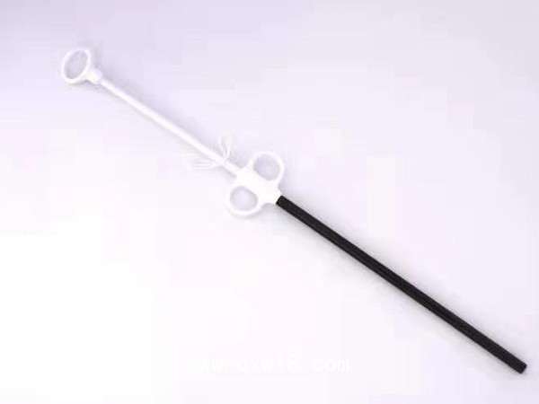 1.打開(kāi)產(chǎn)品包裝,取出一次性使用內(nèi)窺鏡標(biāo)本取物袋。將一次性使用內(nèi)窺鏡標(biāo)本取物袋通過(guò)穿刺器伸至腹腔內(nèi)手術(shù)部位,向前推送推桿使一次性使用內(nèi)窺鏡標(biāo)本取物袋袋體從外套管前端伸出,袋口自然張開(kāi)。