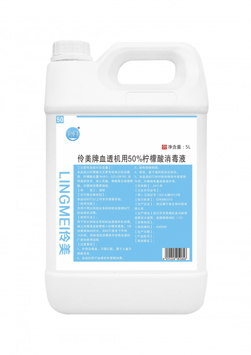 伶美牌血透機(jī)用50%檸檬酸消毒液產(chǎn)品說明: