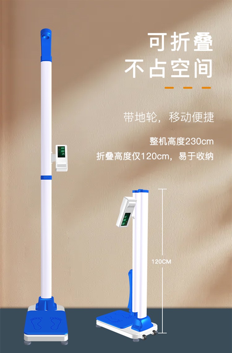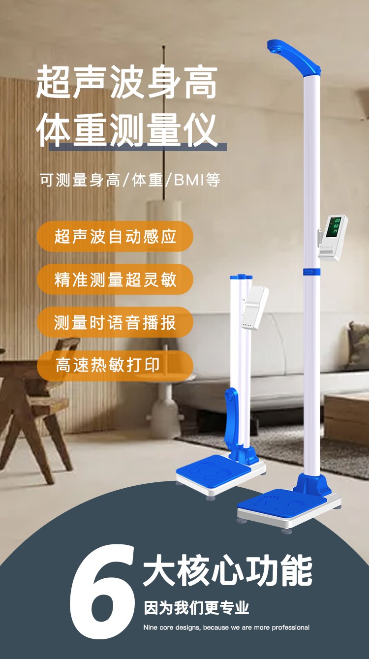 DHM-30D型全自動(dòng)身高體重秤采用微電腦控制,可自動(dòng)測(cè)量身高、體重、BMI,測(cè)量結(jié)果采用數(shù)碼屏顯示并語(yǔ)音播報(bào),打印測(cè)量結(jié)果;機(jī)身輕巧,可折疊,帶地輪,移動(dòng)方便,折疊后高度120cm。先進(jìn)的超聲波測(cè)高,精密傳感器測(cè)重,使測(cè)量更準(zhǔn)確??膳c計(jì)算機(jī)連接(標(biāo)配USB連接,選配無(wú)線(xiàn)藍(lán)牙,WIFI等),以備存檔;本機(jī)機(jī)身輕巧,使用方便,測(cè)量高效,是醫(yī)院、藥房、診所、學(xué)校、商超、幼兒園、健身場(chǎng)所、社區(qū)服務(wù)中心、體檢中心、健康小屋項(xiàng)目和政府事業(yè)單位等部門(mén)和單位的理想選擇。