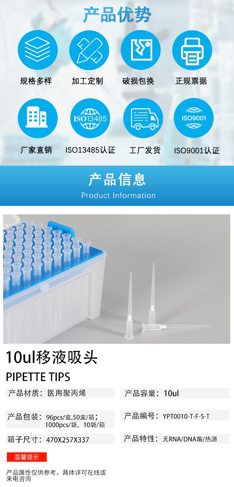 廠家供應(yīng)實(shí)驗(yàn)室耗材一次性移液吸頭 移液濾芯吸頭10ul產(chǎn)品說(shuō)明: