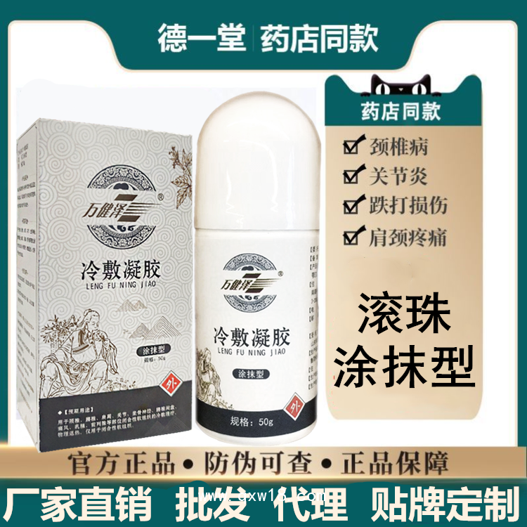 萬健澤冷敷凝膠,每瓶50g裝,塑料滾珠涂抹,一箱100瓶。