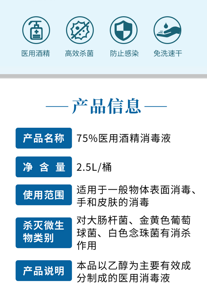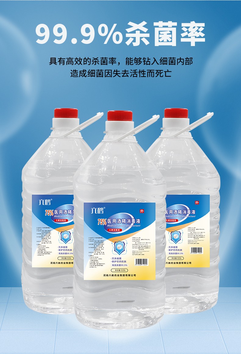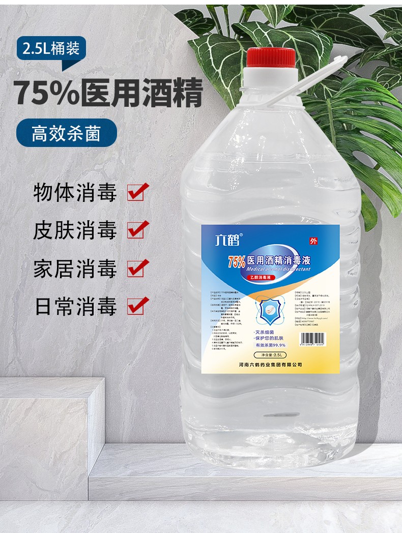 六鶴75%酒精消毒液 乙醇消毒水2.5升殺菌產(chǎn)品說明: